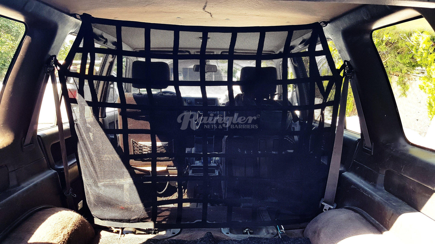 Full floor-to-ceiling barrier/divider for dogs and gear containment.