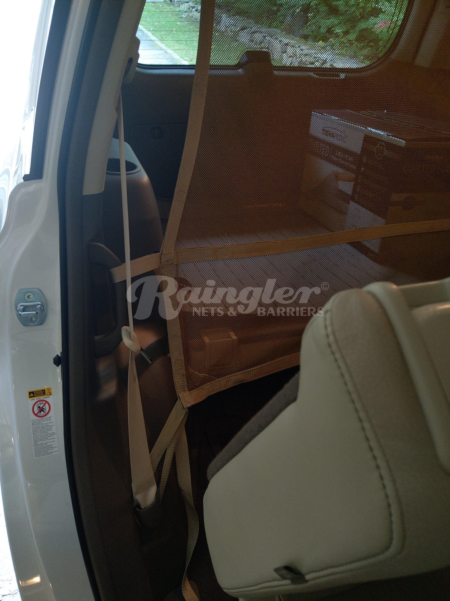 Barrier fits behind the 2nd row seats to securely contain dogs and gear in back.