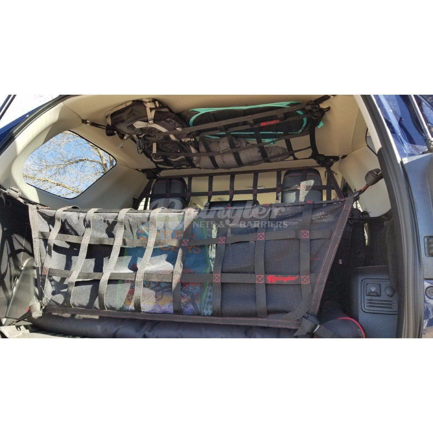 Includes 8 mount points built on this net and extends from floor of tailgate area up along the window area and then to front of wheel wells to allow containment even with seats in down folded position.