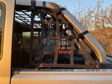 Back window net walls up behind the rear roll-bars and up to the top of the cage with increased coverage extended to the tailgate area. Choose standard or extended option, depending on your needs.