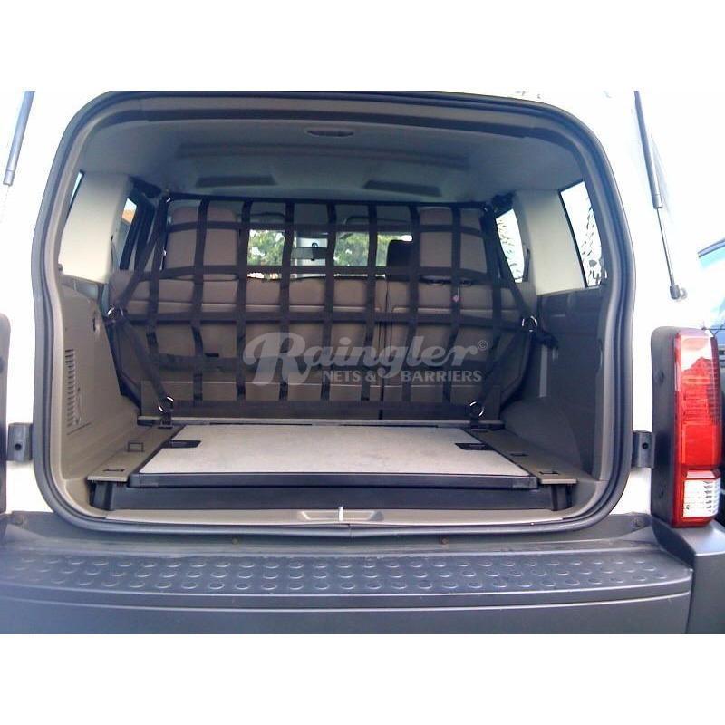 Full floor-to-ceiling barrier divider net with quick release rings fits behind 2nd row seats to keep gear and dogs securely in back.