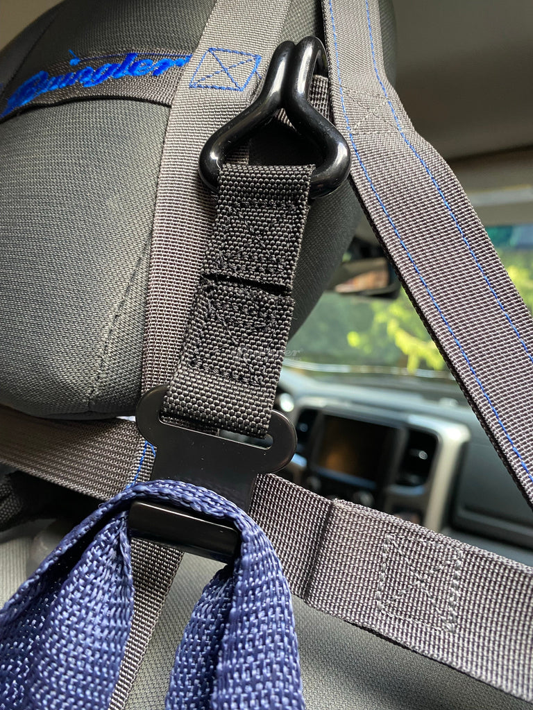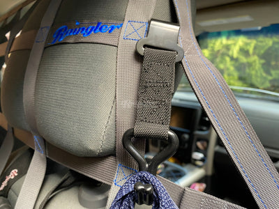 Easy and sturdy way to hang bags, dog leashes, hat, FAK, lamps, pretty much anything with a loop!
