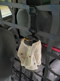 The flat hook can hang on a door or liftgate opening outside. Great for the campsite bucket, bag or lamp.