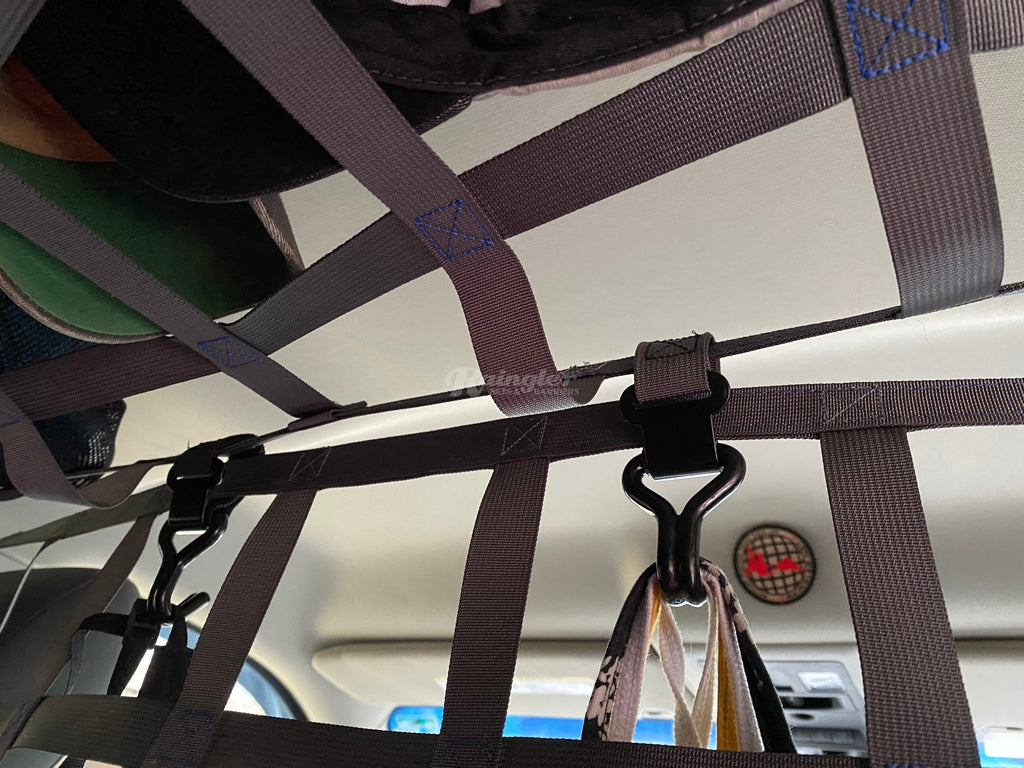 Lash your Raingler ceiling net to your front or rear barrier nets to close up any opening. Great for taller dogs that want to peer over the barrier net.